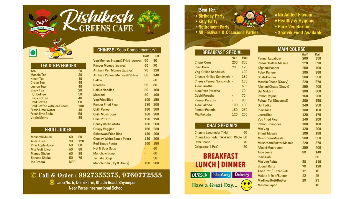 Rishikesh Greens Cafe Menu